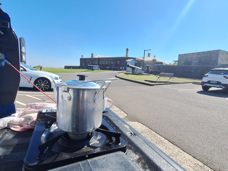 After leaving Samurai Beach, we headed south again to visit our friends — Dani, Greg, and little Elo. What should have been a simple two‑hour drive to Shelly Beach on the Central Coast stretched into five, thanks to a detour through Newcastle and its maze of roadworks. But the delay turned out to be a gift. We stopped at Fort Scratchley for a coffee break, wandering around the well‑preserved WWII gunnery that once guarded the harbour. The views from the headland were spectacular, the coastline sweeping out in long, bright arcs.